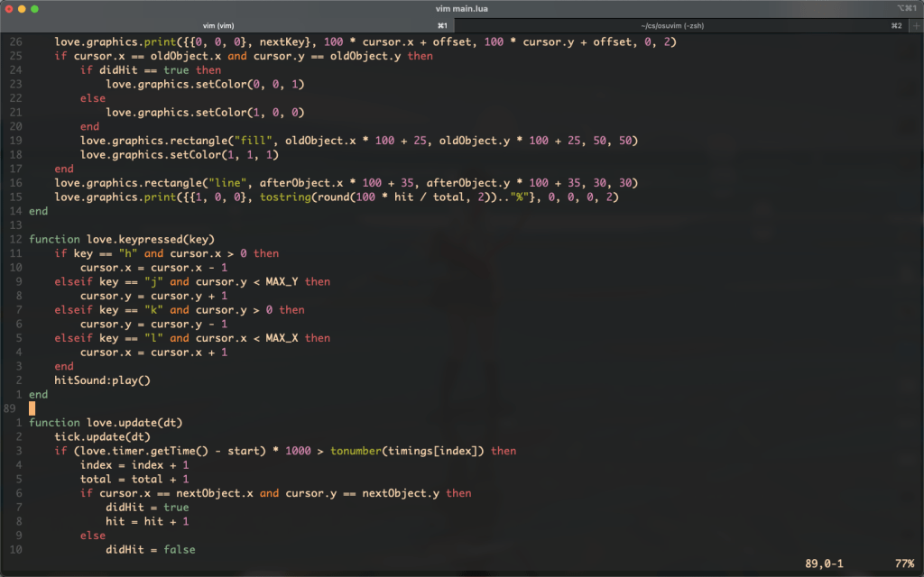 osu!vim also has a love.keypressed() function to move the cursor whenever the player presses h, j, k or l.