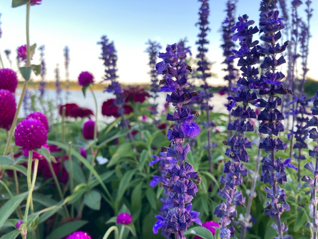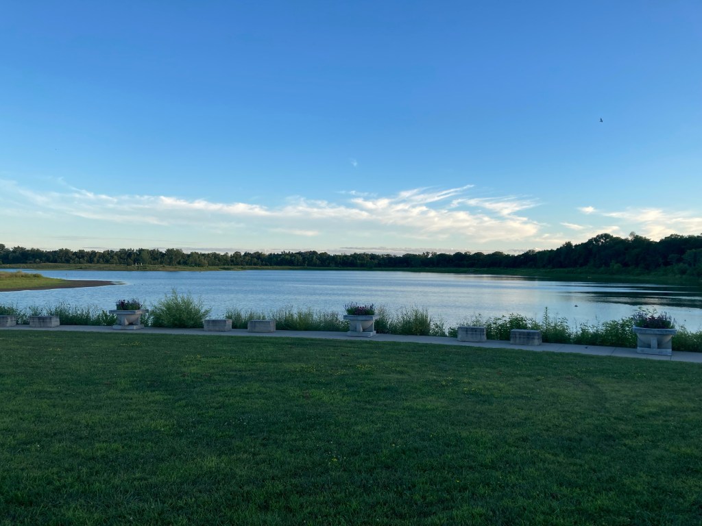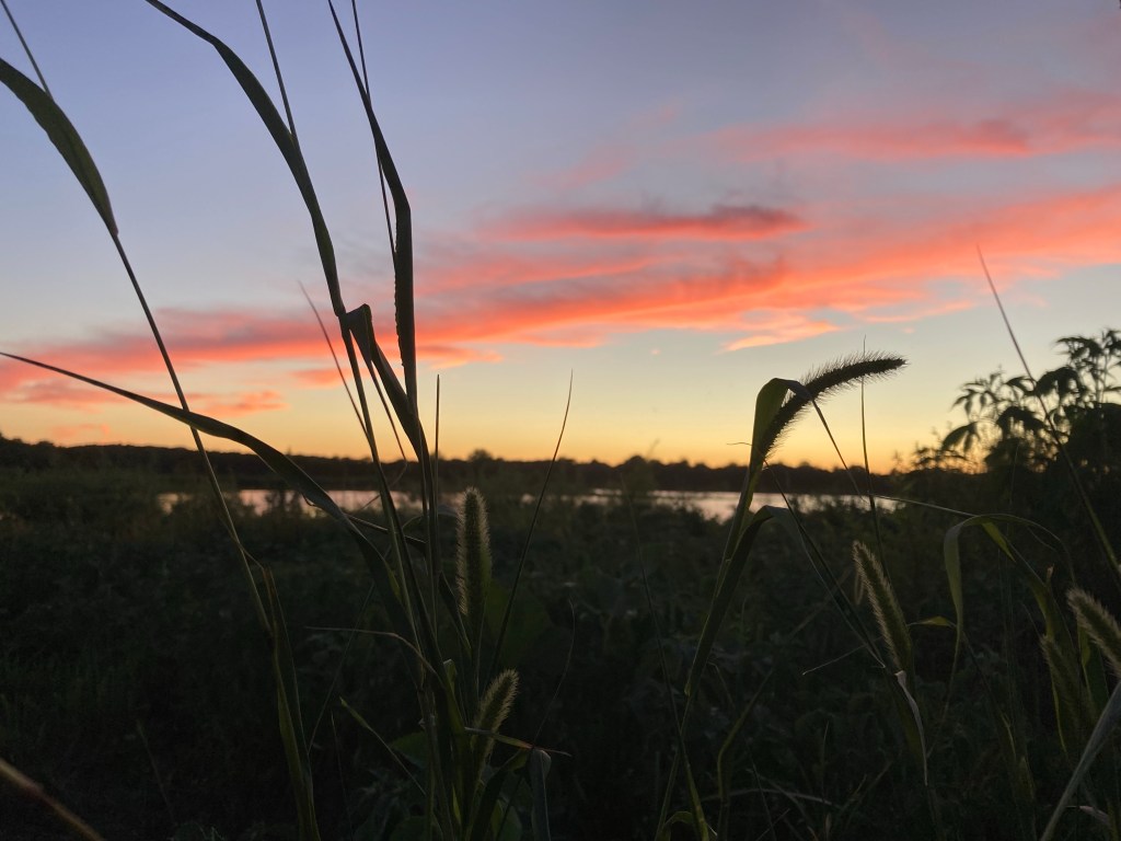 7:30 p.m. After dinner, my family goes to a nearby pond to walk around. The sun was setting and it was very pretty: